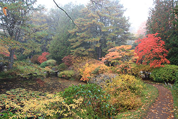 After a busy and hot summer at Tranquil Lake Nursery, we finally traveled to Maine and Mt. Desert Island in October. Our first destination was to a garden, The Asticou Azalea Garden in Northeast Harbor, laid out as a Japanese Stroll Garden. Both Debi and I have deep spiritual connections to this garden. The fall coloration of Fothergilla major and Enkianthus campanulatus was vibrant, even in an overcast mist. The falling leaves of the katsura tree (Cercidiphyllum japonica) perfumed the air with the sweet scent of caramelized sugar. The garden is remarkable not only for creating captivating sequences of beauty but for it’s very being. It is a ‘garden phoenix’, like the mythical bird rising from the ashes of its predecessor, Asticou arose from the dismantling of Beatrix Farrand’s Reef Point Estate.