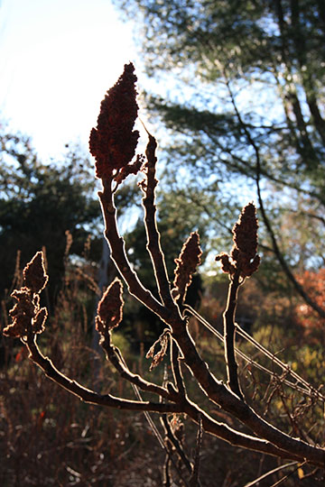 Winter is the season of long shadows, when the sun’s position in relationship to the earth is at its most oblique angle. Winter’s official arrival varies, depending upon how it is defined. Meteorological winter begins on December 1st, astronomical winter arrives on the December 21st, the traditional winter solstice, and horticultural winter starts in mid November after a hard, killing frost. This year’s exceptionally warm October weather came to a abrupt and withering end with the temperature plunging to 22 degrees on November 9th. The extreme cold snap cut off the development of fall color in many plants as well as freeze-drying their leaves, causing unusual and unsightly leaf retention. It was a memorable beginning to this year’s Horticultural Winter.