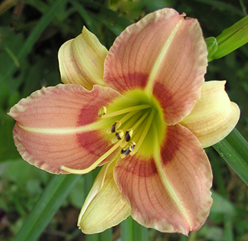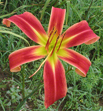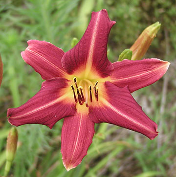 | Lady Mary Duke (6 1/2", E.M., 26", reblooms $15) | May May (3 1/2", E. to L.", 30" fragrant, nocturnal $12) |