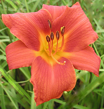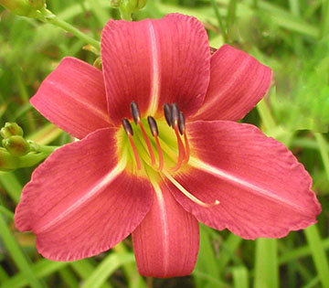 Today there were 35 daylilies blooming in the fields, ten more varieties than last week. Many of the earliest daylilies have finished their season. Most of the daylilies blooming today are still are orange and yellow, but this week there are more reds and pinks blossoms.