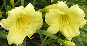 | Stella de Oro (11", Ev., E.M. to V. L. 2 3/4", Re., $8) | Sun Glory (18", D., E. 4 1/2", Re., $18) |